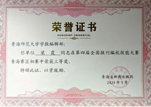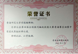 全国报刊编校技能大赛是检验报刊出版行业编校质量与人才水平的权威赛事,青海赛区竞赛覆盖省内33家报刊出版单位,共计85名选手参加。《青海师范大学学报》编辑部派出5名编辑参加比赛,其中2名编辑荣获个人三等奖。学报编辑部荣获“优秀组织单位奖”。