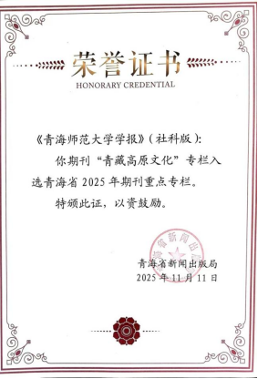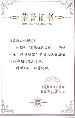 近日,青海省新闻出版局正式公布了2025年青海省期刊重点专栏评选结果,《青海师范大学学报》(社会科学版)“青藏高原文化”专栏与《高原文化研究》“高原红色文化:‘两弹一星’精神研究”专栏成功入选。这一佳绩,是我校学术期刊建设取得的又一标志性成果。